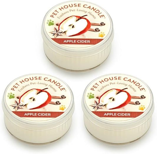 One Fur All Apple Cider Pet Odor Eliminating Mini Candle - 3 Pack - Natural Wax, Non-Toxic, Scented, 8-10 Hours Burn Time - Made in USA or Imported