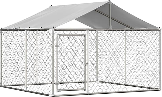 Large Dog Kennel 9.8X9.8FT, Large Outdoor Dog Kennel Heavy Duty Dog Cage with Waterproof UV-Resistant Cover Roof, Large Dog House Pen Enclosure, Silver