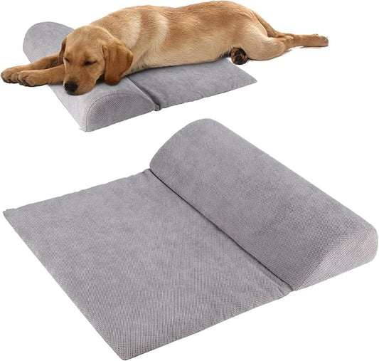 Dog Bolster Pillow with High Resilience Foam, Headrest for Large Dogs, Benefit for Cervical Vertebra and Neck, Easy to Carry, Machine Washable Cover&Easy to Clean(Grey)