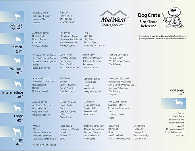 - Life Stages single door dog crate measures 48L x 30W x 33H inches and is suitable for extra-large dog breeds with an adult weight of 90-110 pounds. If your dog’s weight or measurements are on the higher side for this crate, we recommend buying the next crate size up. When in doubt, bigger is better
