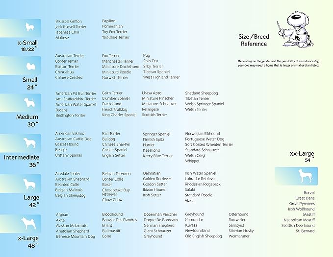- ICrate single door dog crate measures 22.5L x 13.5W x 16H inches and is suitable for XS dog breeds with an adult weight up to 12 pounds. If your dog’s weight or measurements are on the higher side for this crate, we recommend buying the next crate size up