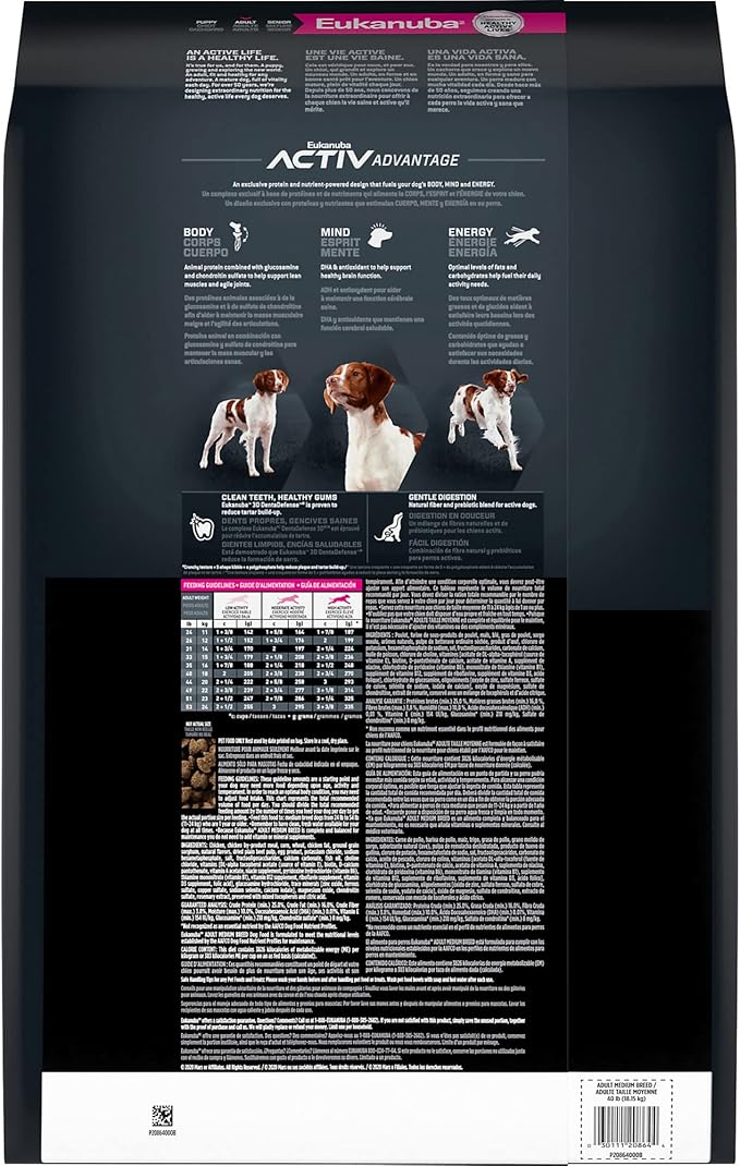 - FOR MEDIUM BREED DOGS: Eukanuba Adult Medium Breed Dog Dry Food Formula delivers complete and balanced nutrition for medium breed dogs over 12 months old and weighing 24-54 lbs
