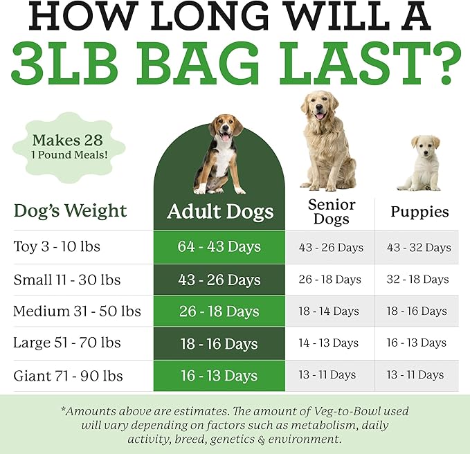 - 3 pound bag makes 28, one pound finished meals; High in Calcium and other minerals; Grain-Free, Non-GMO Certified & Made in the USA; Holistic Formula with NO Synthetic Ingredients, NO Chemicals, NO Preservatives, No Dyes