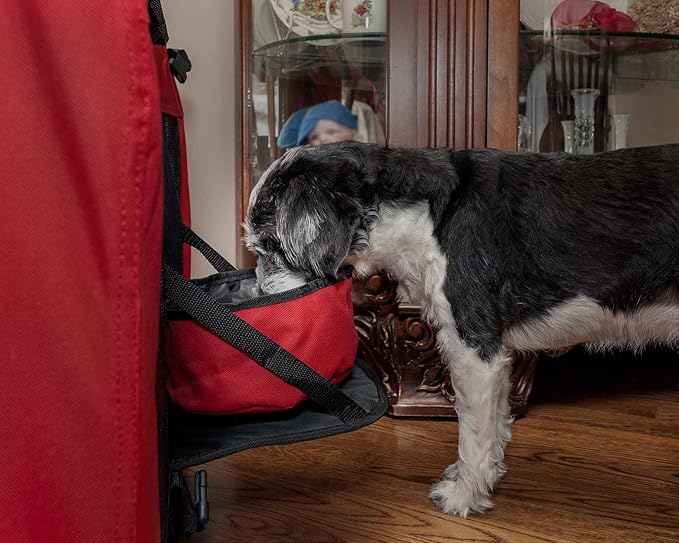 - Features a Folding Tray and an Included Zippered Pouch with a Waterproof Travel Pet Bowl that's perfect for Hydrating or Feeding your pet. The Exterior walls are composed of Durable and Scratch-Resistant Nylon with reinforced stitching and features a Top Carrying Handle with a Built-in Leash Securer for added safety