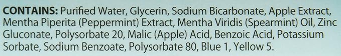 - Contains the natural breath fresheners Apple Essence, Baking Soda and Fresh Mint