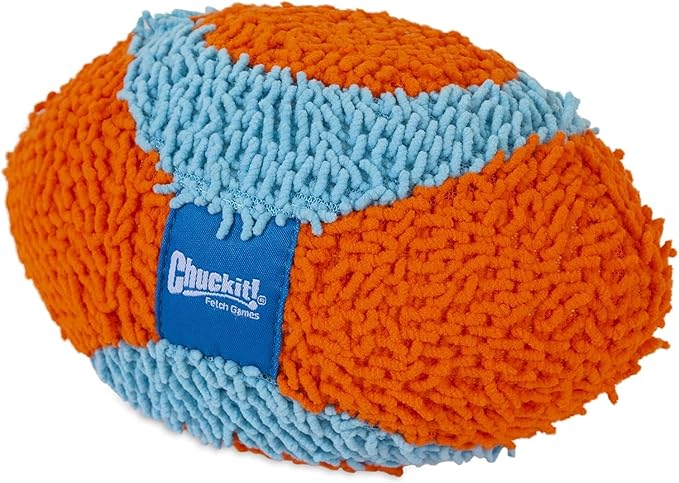 Chuckit! Indoor Fetch Fumbler Dog Toy - Soft Pet Toy for Dogs - Made with Durable, Lightweight, Plush Chenille Fabric - Great Alternative to Balls - 9.5-inch Diameter - Orange and Blue