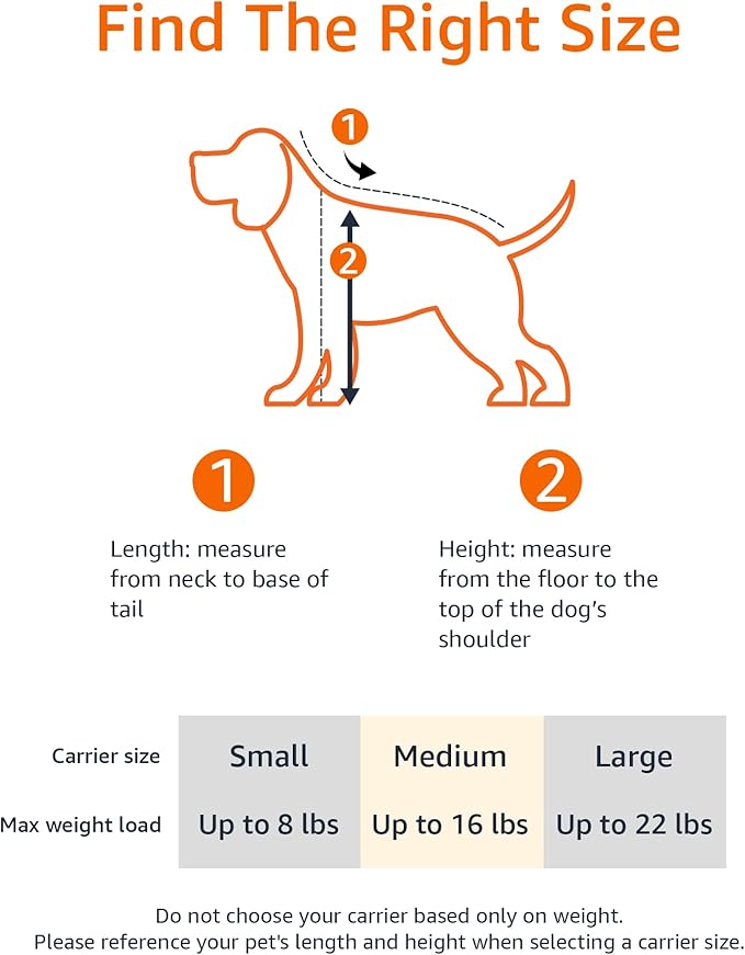 - Dimensions: 19.7 x 10.2 x 11.2 inches (LxWxH); recommended max weight of 22 pounds, please measure pet's length (neck to base of tail) and height (floor to top of shoulder)