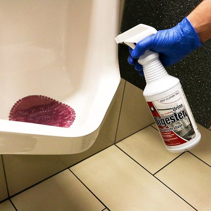 - Mop or spray around urinals and commodes