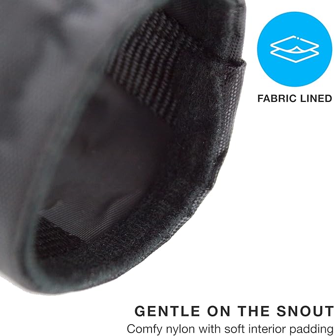 - Comfortable sheath style cloth safety muzzle designed to fit average snouted dogs