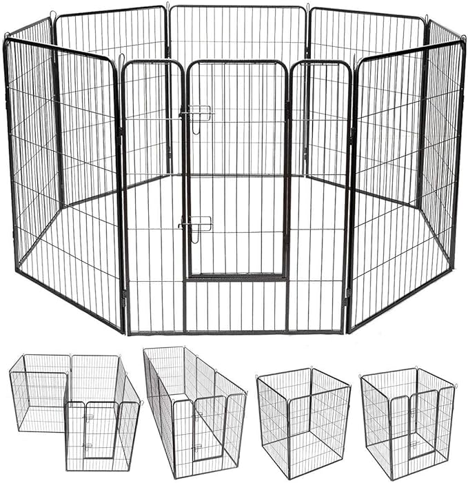- 【Heavy Duty Dog Playpen】 Constructed with heavy duty metal material, Giantex pet dog playpen is sturdy and durable enough for your long-time use. And it is rust proof and weather resistant, providing a comfortable and safe exercise pen perfect for safely restricting your furry friends especially for outdoor use.