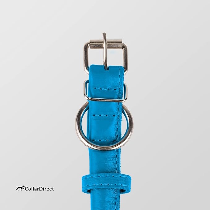 CollarDirect Rolled Leather Dog Collar, Soft Padded Round Puppy Collar, Handmade Genuine Leather Collar Dog Small Large Cat Collars 13 Colors (16-20 Inch, Blue Textured)'