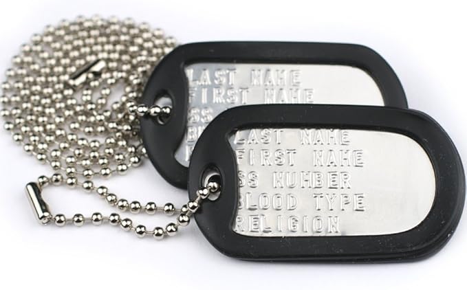 - Genuine personalized military ID tag set comes with 2 tags, chains, & silencers. Includes personalization of up to 5 lines of text on each tag (each tag can be identical or have different info)