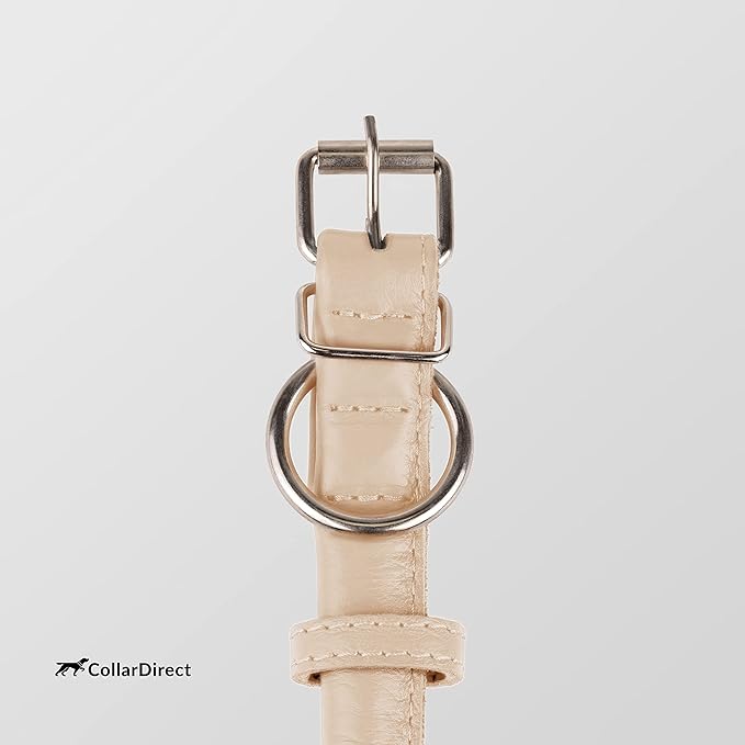 CollarDirect Rolled Leather Dog Collar, Soft Padded Round Puppy Collar, Handmade Genuine Leather Collar Dog Small Large Cat Collars 13 Colors (6-7 Inch, Beige Textured)