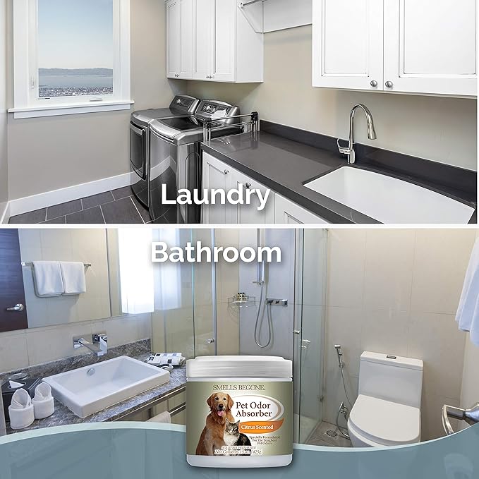 SMELLS BEGONE Air Freshener Pet Odor Absorber Gel - 15 oz, Pack of 2 - Absorbs and Eliminates Odor in Pet Areas, Bathrooms, Cars, & Boats - Made with Essential Oils - Citrus Scent