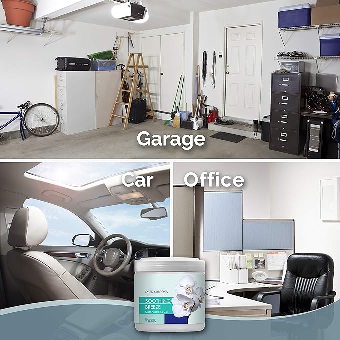 SMELLS BEGONE Air Freshener Odor Absorber Gel - 15 oz, Pack of 2 - Absorbs and Eliminates Odor in Pet Areas, Bathrooms, Cars, & Boats - Made with Essential Oils - Soothing Breeze Scent