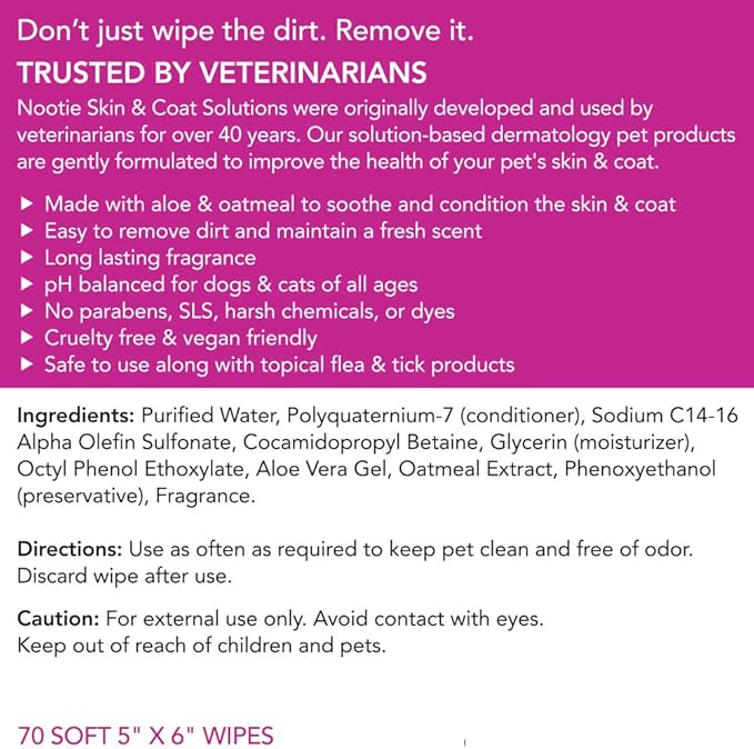 Nootie Waterless Shampoo Wipes for Dogs & Cats - Long Lasting Japanese Cherry Blossom Fragrance - Sold in Over 10,000 Vet Clinics and Pet Stores Worldwide, Made in USA - 70 Count