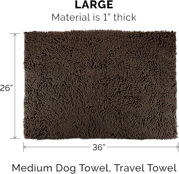 Furhaven 36" x 26" Highly Absorbent Dog Door Mat for Muddy Paws, 100% Washable, Perfect for Entryway, Kitchen, & Bathroom Use - Chenille Shammy Rug - Mud (Brown), Large