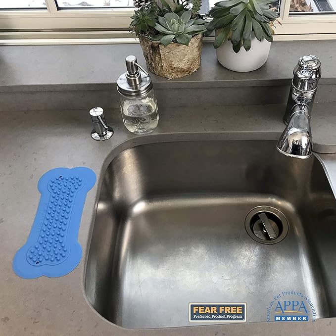 • STICKS TO ANY FLAT SURFACE: Designed for use in bathtubs, sinks, and grooming stations, the Lick Lick Pad doesn’t use suction cups or require adhesives but sticks directly to any flat/shiny surface like tile, porcelain, granite, or glass.