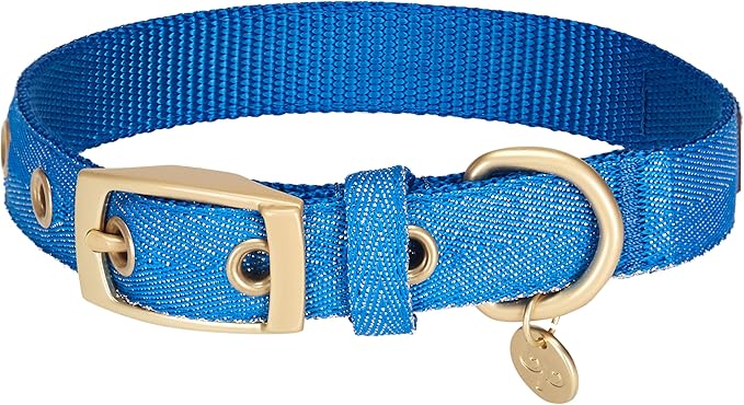 Blueberry Pet 6 Colors The Most Coveted Designer Mixed Metallic Thread Adjustable Dog Collar in Sparkling Azure Blue with Metal Buckle, Neck 17-20.5", for Large Breed