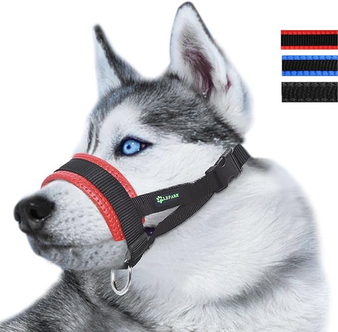 Nylon Dog Muzzle for Small,Medium,Large Dogs Prevent from Biting,Barking and Chewing,Adjustable Loop(XL/Red)