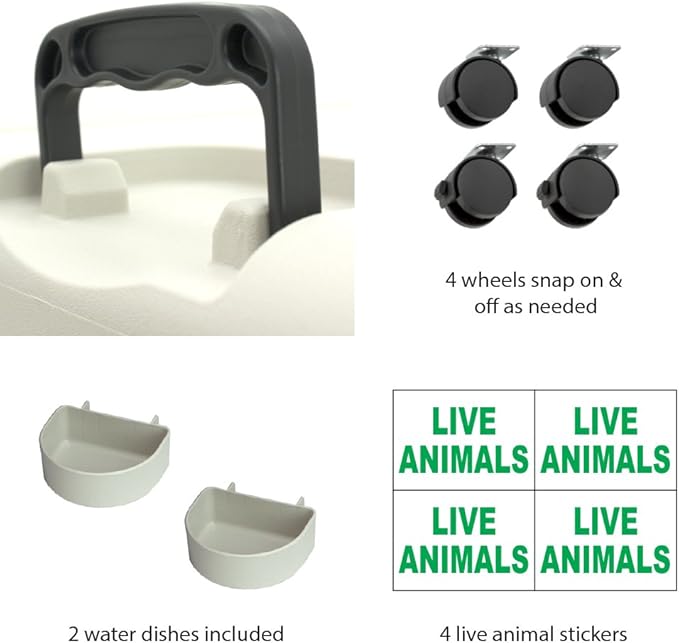- Iata airline approved. 2 dishes, 4 live animal stickers, metal bolts and nuts included