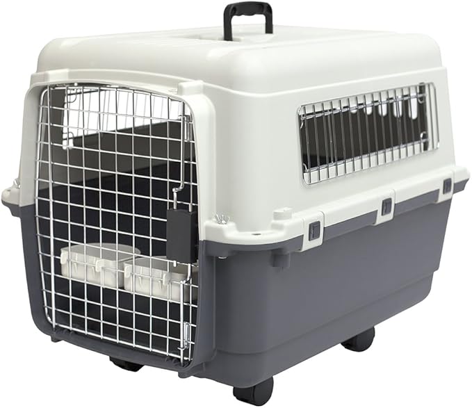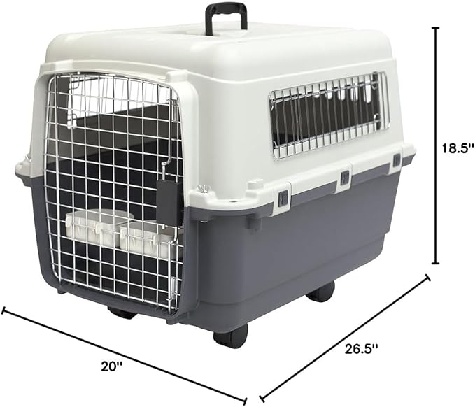 SportPet Designs Plastic Kennels Rolling Plastic Wire Door Travel Dog Crate - Medium, Gray (CM-2001-CS01)