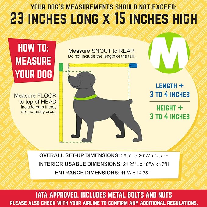 - Your dog's measurements should be under 24"" L x 16"" H for medium kennel