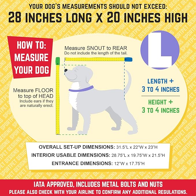 - Your dog’s measurements should be under 29” L x 20” H for large kennel