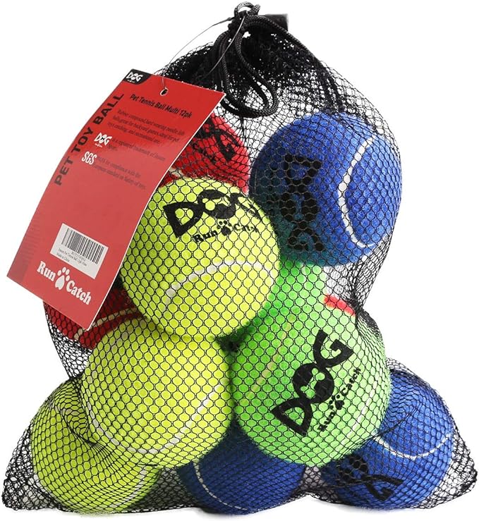 Tennis Balls for Dogs Pack of 12 Colorful Easy Catching Pet Toy Balls (2.5inch-4colors)