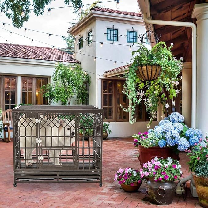 - 【Size and aftersales】42"L X 31"W X 37"H, Brown. The height of the dog cage with wheels is 37 inches, and the internal height is 30.7 inches. Suitable for most medium and large dogs, perfect for indoor and outdoor use. If any quality problem within 3 years, please contact us. We will provide with the most satisfactory solution!