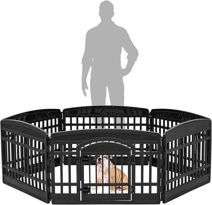 IRIS USA 24" 6-Panel Dog Playpen with Door, 61 x 61 x 24, Puppy Playpen, Dog Play Pen Indoors, Pet Fence, Small/Medium Pets, Black