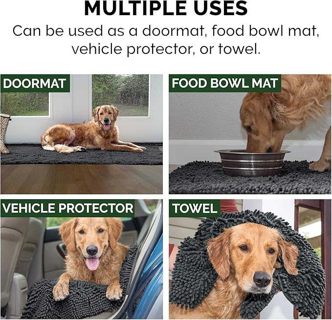 - MULTIPURPOSE: The rug's collection of highly absorbent, cuddly soft microfiber chenille filaments make it an ideal choice for a floor mat, door mat, food mat, sleeping bed mat, and furniture cover; it's also great for toweling off wet and dirty pups