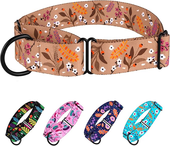 - [Pretty Floral Martingale Collars] - This nylon dog collar is soft and comes in unique designs and floral and bright colors. Choose from 5 colors: pink, black, navy blue, toffee, and aquamarine.