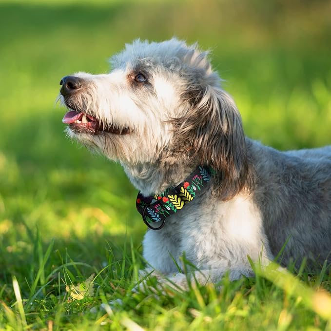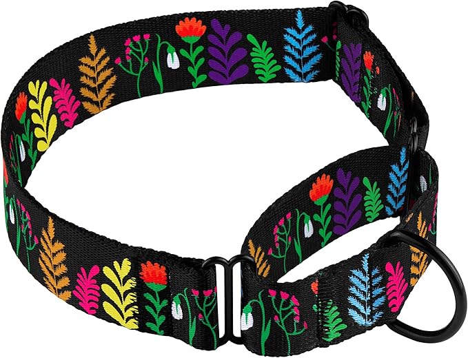CollarDirect Martingale Collars for Dogs Heavy Duty Floral Pattern Female Safety Nylon Training Wide Collar Flower Design Large Medium (XL, Neck Size 19"-24", Black)