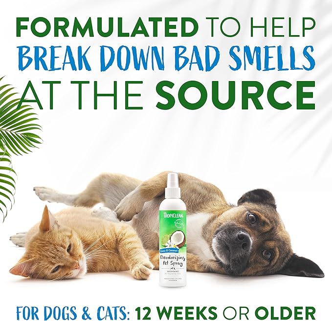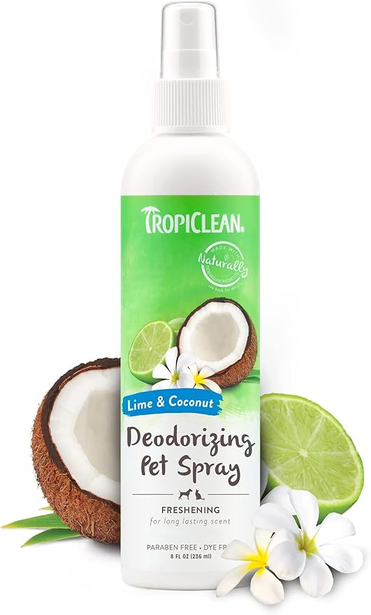 TropiClean Dog Perfume, Long Lasting Lime & Coconut Cologne, Deodorizing Spray for Smelly Dogs, After Bath Detangling Spray with Vitamin E, Safe for Cats, 8oz.