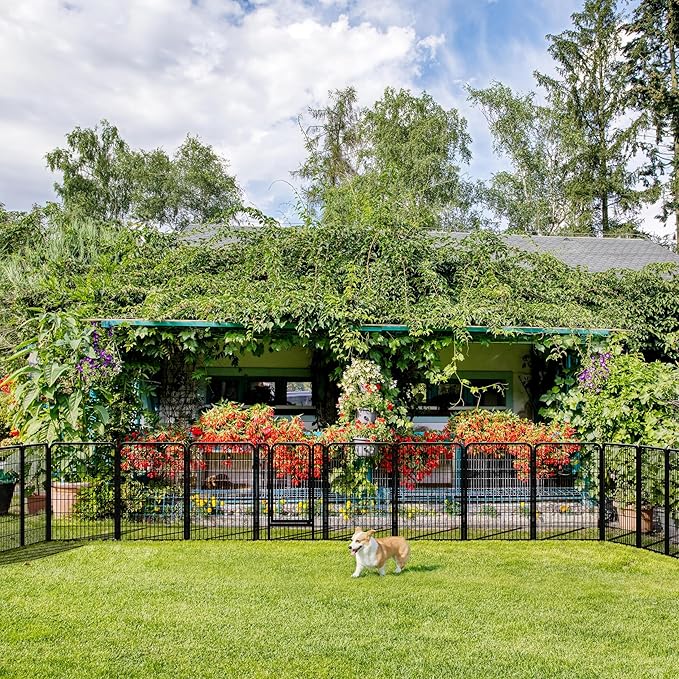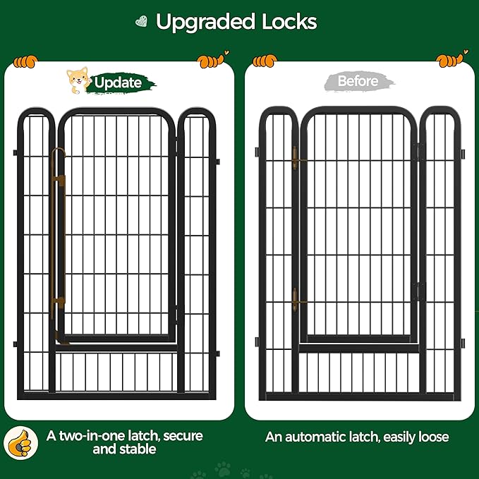 - Safety & Security: Ensuring the safety of your pets is of utmost importance to us. Our exercise pen is crafted with appropriate bar spacing and rounded edges also protect animals from injuries while preventing damage to wood or PVC floors. Additionally, stakes anchor the panels firmly to the grass or soft ground