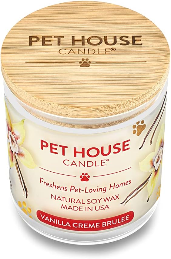 One Fur All Pet House Candle 2 Pack - Plant-Based/Soy - Clean Burning, Long Lasting Pet Odor Candle - Vanilla Sandalwood, Vanilla Creme Brulee