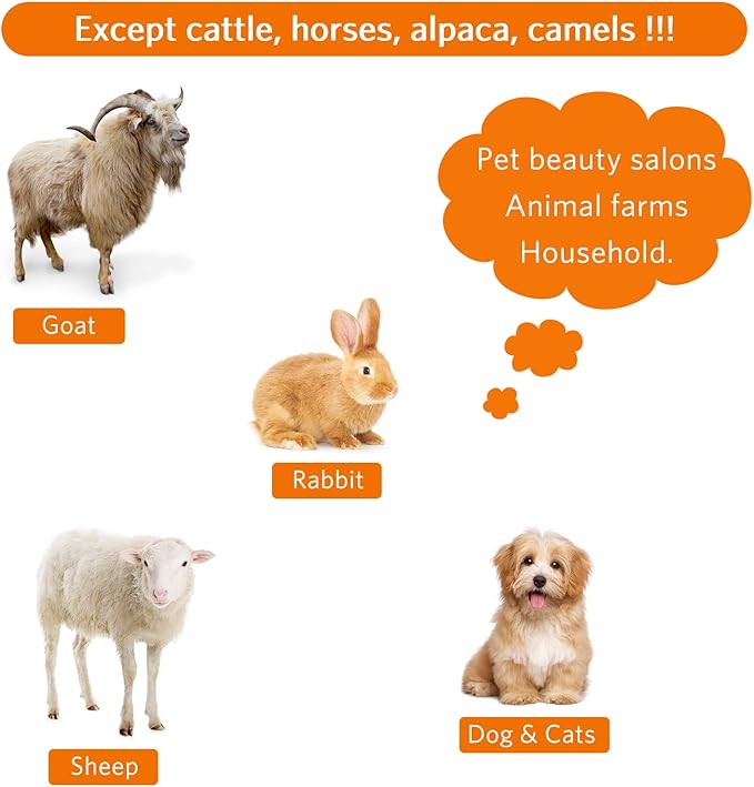 - Scope of application: this pet electric clipper is mainly suitable for animals such as goats, sheep, long-haired dogs, cats and rabbits (except cattle, horses, alpaca, camels), and can be applied in beauty salons for pet, farms and household