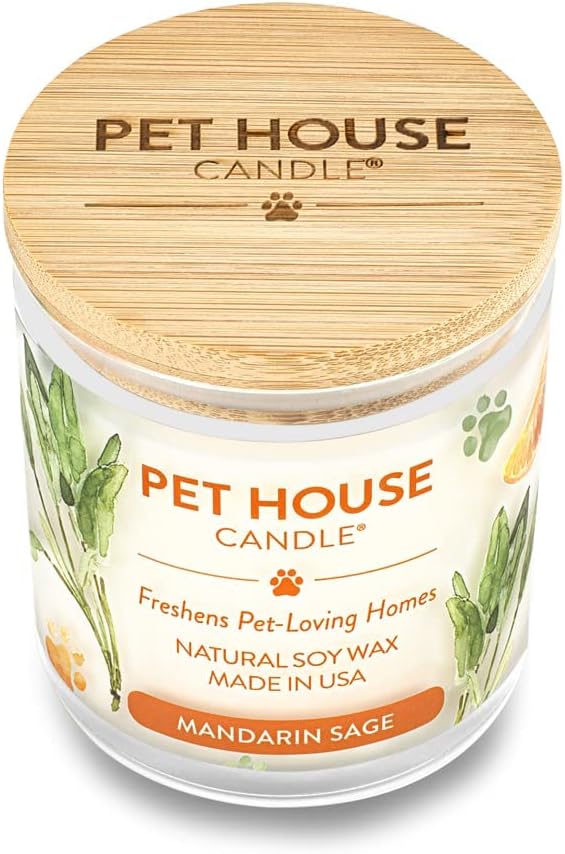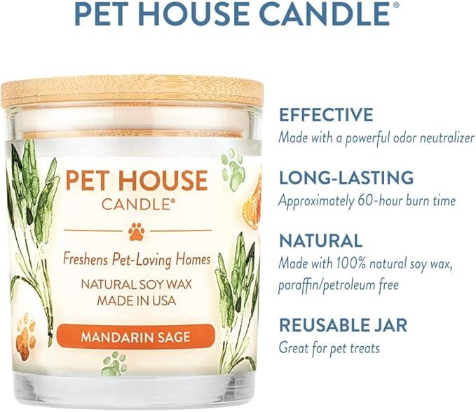 One Fur All Pet House Candle 2 Pack - Plant-Based Soy Candle - Long Lasting Pet Odor Elimination - Mandarin Sage Scent