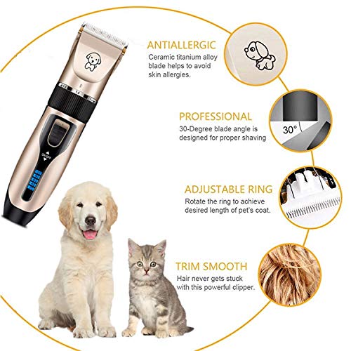 Professional USB Dog Clippers Low Noise Rechargeable Pet Trimmers Cordless Pet Grooming Kit Electric Pet Hair Clippers Dog Shavers with LED Display Nail Kits Replacement Blade