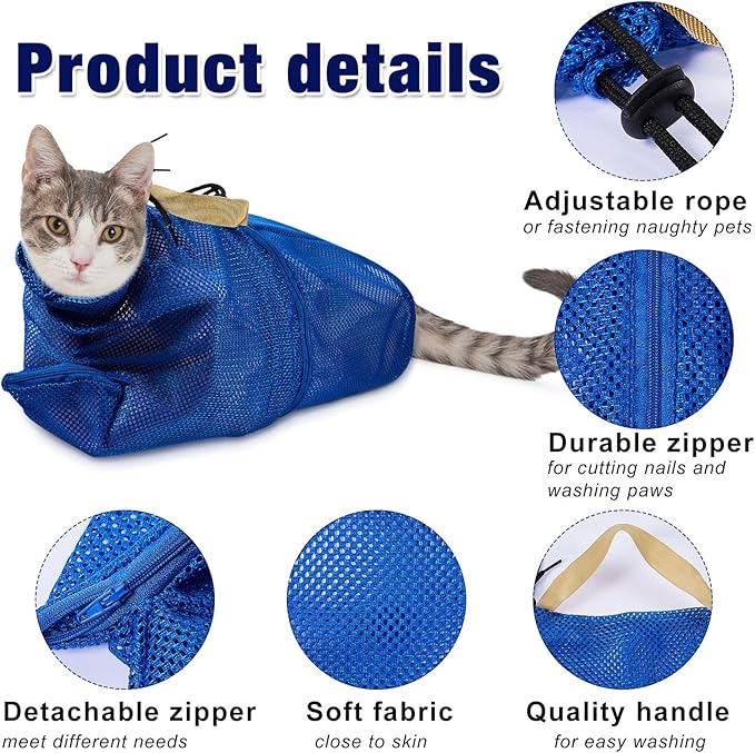 - Durable to use: made of quality thick mesh fabric, both the cat mesh muzzle and the cat bathing bag are durable to use, scratch-resistant and anti-bite, good air permeability, easy to drain and dry, makes your cat comfortable and can be easily stored after using them, come and use these cat muzzle and the cat shower bag with confidence