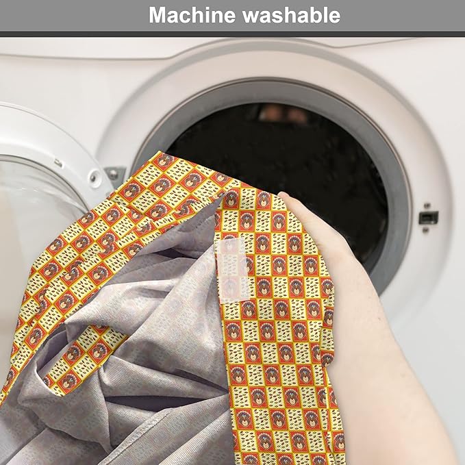 Lunarable Thanksgiving Dog Crate Cover, Checkered Pattern with Funny Cartoon Gobbler and Fallen Autumn Leaves, Easy to Use Pet Kennel Cover for Medium Large Dogs, 36 Inch, Red Yellow Brown