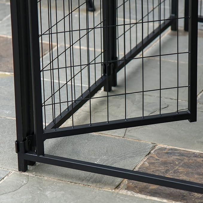- Steel Frame: The metal railings on this outdoor dog cage are strong and sprayed for a better-quality surface. There are no sharp edges that could hurt your pets.