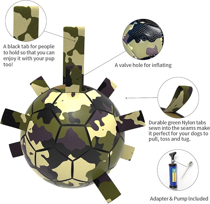 QDAN Dog Toys Soccer Ball, Interactive Dog Toys for Tug of War, Dog Tug Toy, Dog Water Toy, Durable Dog Balls for Medium & Large Dogs-Camouflage(8 inch)