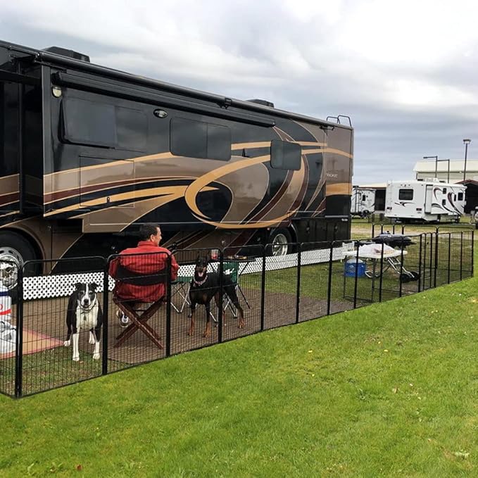 - 🐶🐶【A LARGE SECURE AREA】Our puppy playpen is great and keeps your pets safe from others, plenty of room for your pets and the sides of dog playpen are tall enough for a small child to reach into the enclosure. Have peace of mind to contain your pet within the enclosure. You can connect more pet playpen together to cover a larger area. puppy playpen dog playpen pet playpen