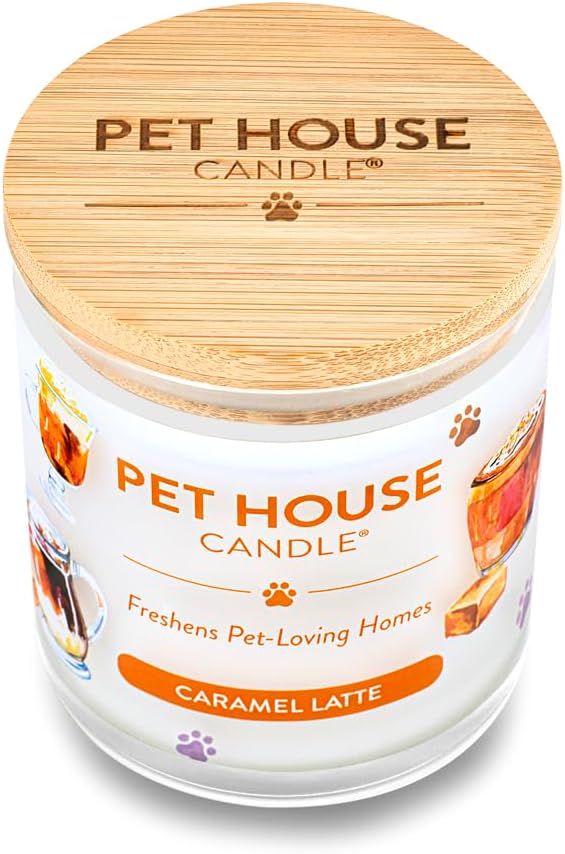 One Fur All Pet House Candle Plant-Based/Soy Candle - Clean Burning Scented Candles, Long Lasting Pet Odor Candle for Home - Caramel Latte