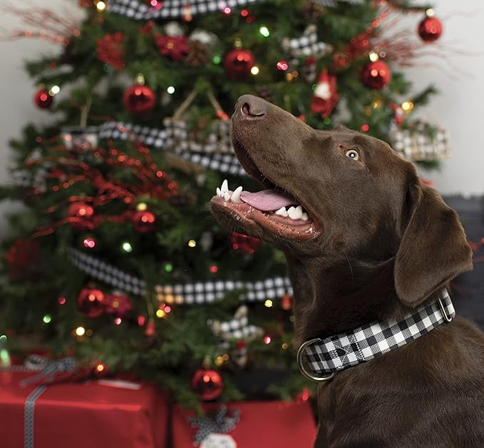 Country Brook Petz - Deluxe Black & White Buffalo Plaid Dog Collar - Made in The U.S.A. - Plaid and Argyle Collection Featuring Charming Designs (1/2 Inch, 2XS)