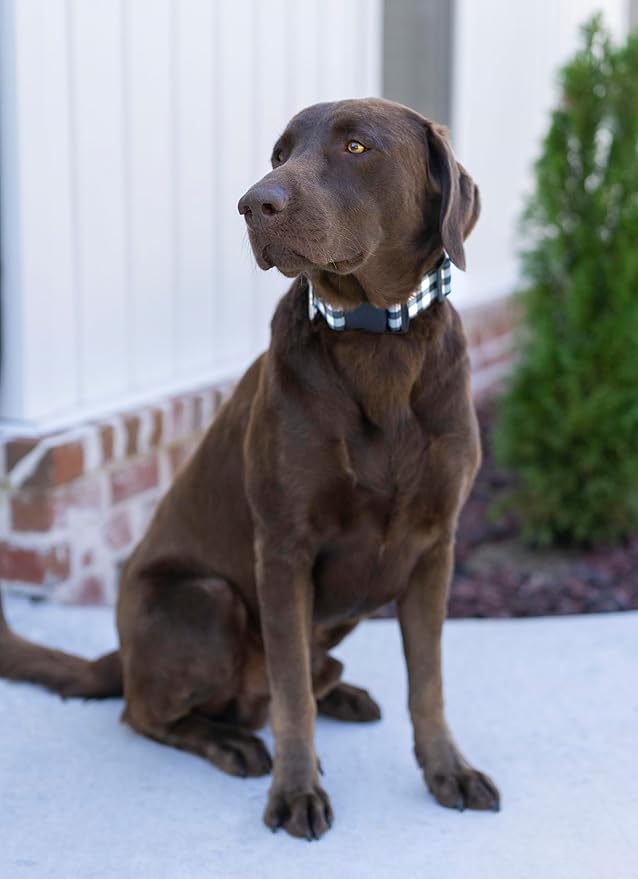Country Brook Petz - Deluxe Black & White Buffalo Plaid Dog Collar - Made in The U.S.A. - Plaid and Argyle Collection Featuring Charming Designs (5/8 Inch, Small)