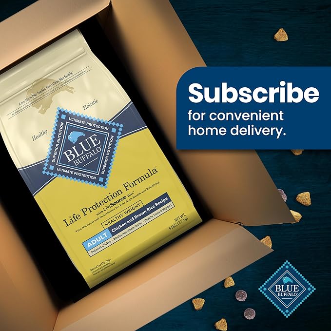 - Contains: One (1) 5-lb trial-size bag of BLUE Life Protection Formula Adult Healthy Weight Dry Dog Food, Chicken and Brown Rice