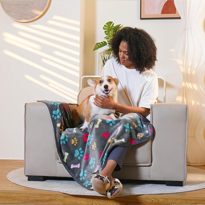 Luciphia 1 Pack 3 Blankets Fluffy Premium Fleece Pet Blanket Flannel Paw Printed Throw for Dog Cat(Large 41x31'', Grey)